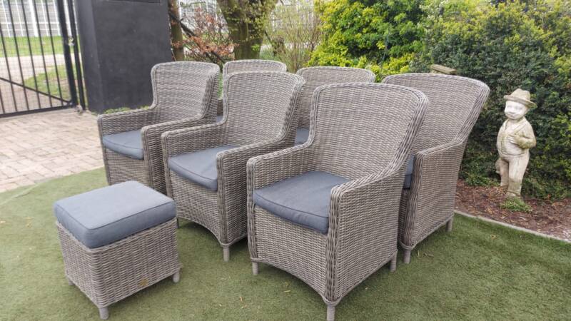 6 zeer mooie luxe wicker tuinstoelen