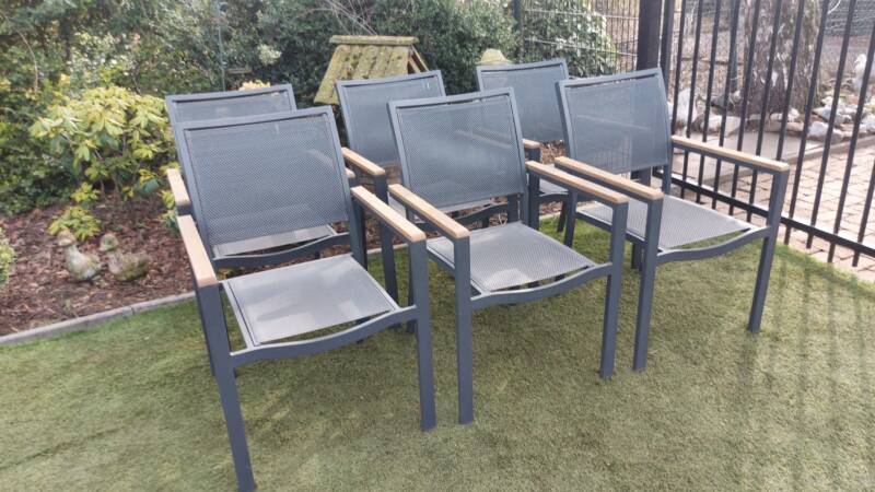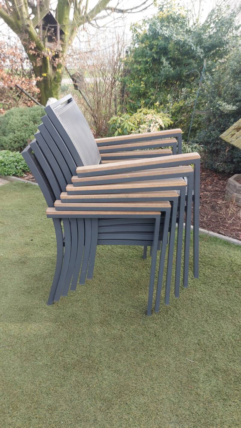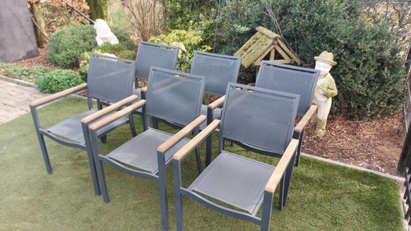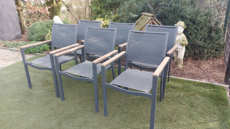 6 zeer mooie nette stapelbare tuinstoelen
