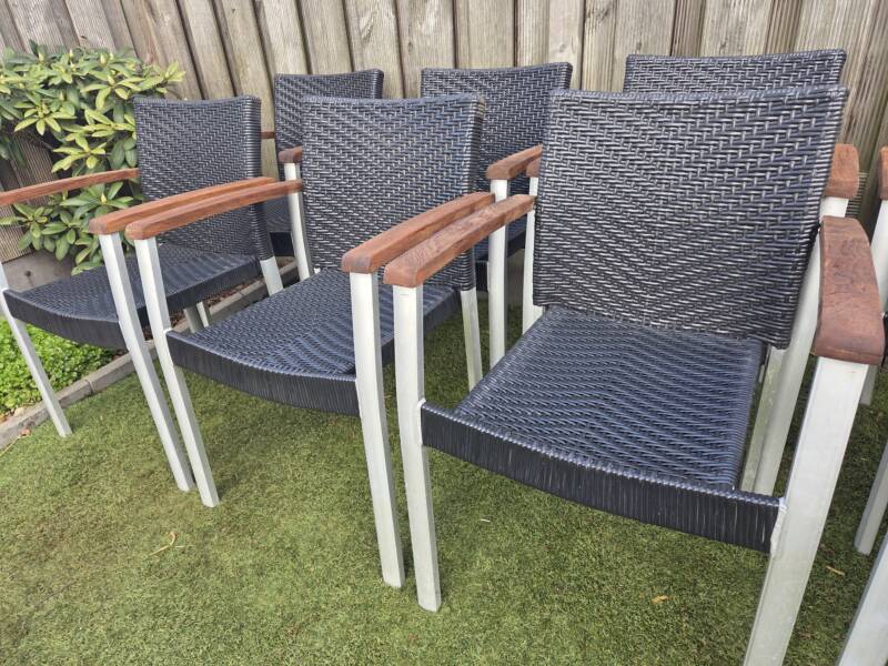 Wicker met aluminium frame en houten armleuningen